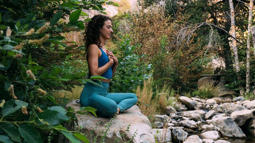 Ishvara Pranidhana (Dedication to God): Presence: Completing the experience of Warrior 1, we step forward to Mountain Pose with one hand on our heart and one hand on our belly. We find ourselves beyond any sense of lack in this moment. Guided by self-discipline and self-study, a longing for Truth, Presence, God springs from the heart and pours through our body. We are home.