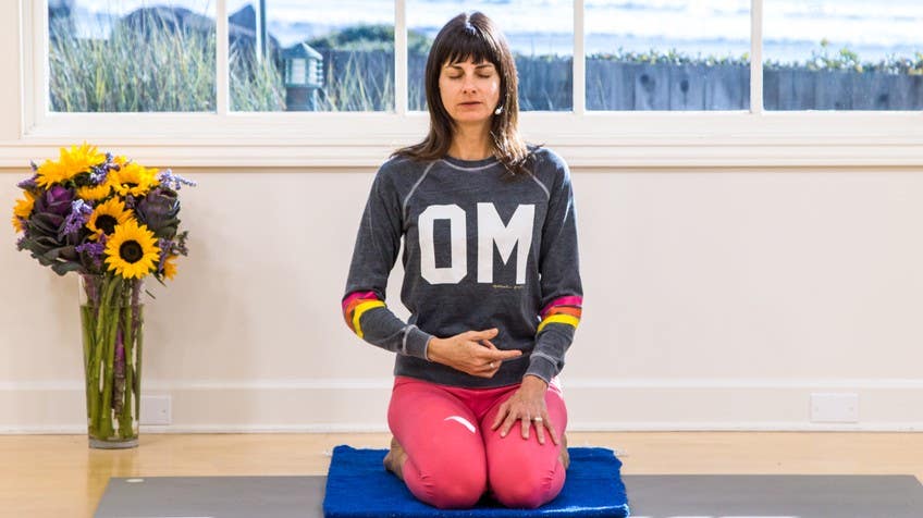 So find a comfortable seat. I'm sitting in virasana, but you can sit cross-legged, you can sit on a chair, you can even lie down as long as you aren't at the risk of going into a deep slumber. And then you can either let your eyes close or if it's more comfortable, your eyes can be very softly open on the floor in front of you. And just allow yourself to have that feeling of unplugging from all the many aspects of your life. The ancient yogis described the body in very poetic ways.