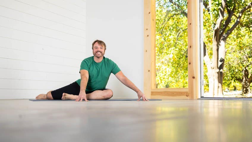 We ground in that awareness of just allowing. Not pushing, not forcing, but instead allowing, especially here for gravity, to begin to help us to release through the torso. With every exhale and you down further and further into the shape without effort. Let's take 5 more long inhales. And long Excels here.