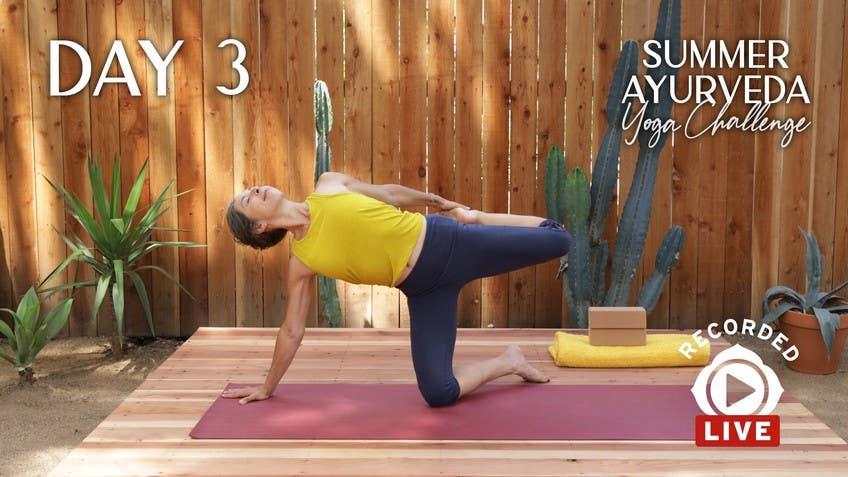 Hello, everyone. Welcome to day three of our Ayurveda Summer Challenge here with Yoga Anytime live streaming once again from magical Ojai, California. I hope you can appreciate this lovely environment. I know I certainly do. Today our practice is called Into the Wilds.