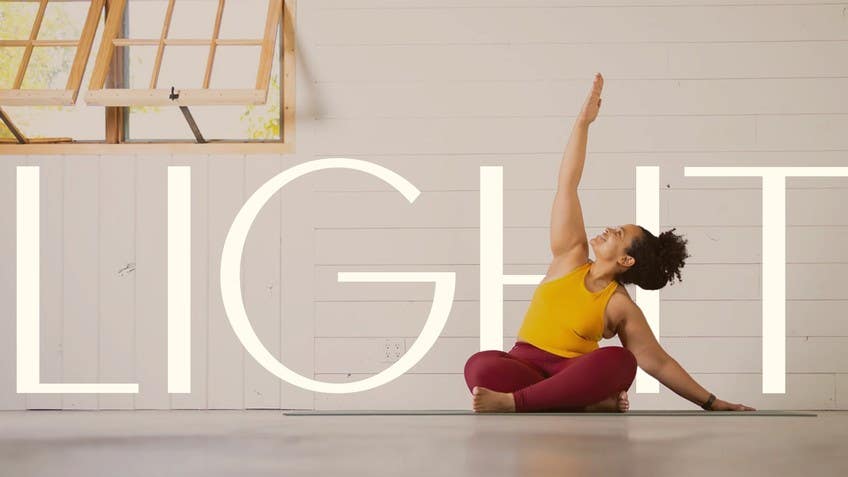Hi. I'm Ashley, and welcome to day 1 of the Byrne Bright Challenge. Our 1st class is seeking light And we're gonna begin in a cross leg seat, sukhasana. So cross as close to the center of your shins as you can manage and then flex through your feet, like you could draw your toes back to meet your knees. And if you see that your knees are sitting higher than your hips or your rounding through your back, come sit on the folded edge of a blanket like I am. Right? Take your hands and place them right on your heart center and just breathe into this present moment.