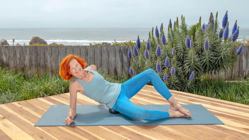 Make sure you have all your props every ball you've got, pillows, blocks, the hole in shellada because the more kind of variety you have you will find you can utilize it. I've even had people do these routines on foam rollers, which I was not recommending, and they email me say, wow. That was the best transformation I've ever experienced. So let me us never be the same again, and we will start with the quads. Again, any ball you want, any size placing it up at the hip bone, lifting up the lower back, taking a moment to lengthen out the the and the leg. Big breath, making sure you're sunk in and not dropped and ride forward towards the groin area.