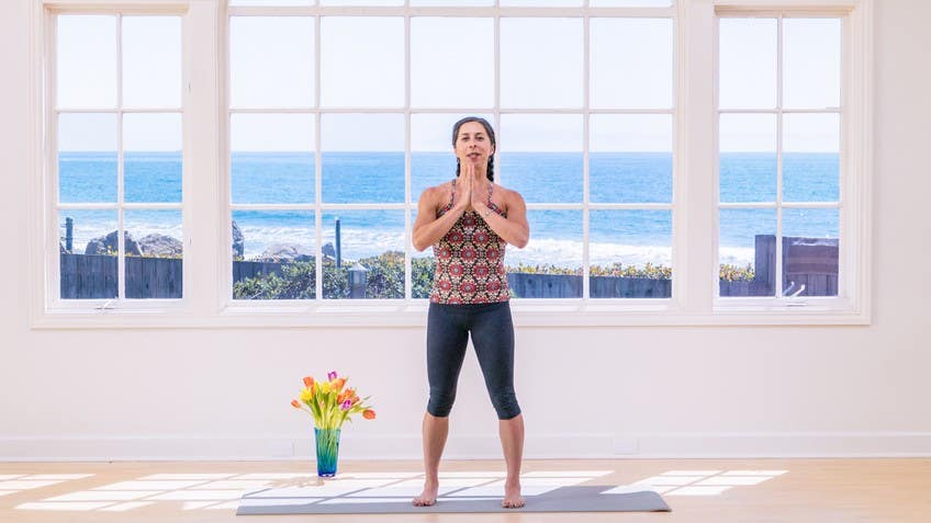 There's a practice on Yoga Anytime of a short standing meditation that you can watch. Another idea is if you sit to meditate to have your eyes open and to stare at a candle that's an arms length away and about the height of your eyes so that your head is not tilting forward, and we do that classic candle gazing as a way to bring more fire and light into your heart, into your body at a time of the year that might feel dark and potentially for some people too dark. So that's one wonderful practice that I like to use really in the new moon time and in the winter times when there's dark phases of the year, and those are a couple of the pieces that I would start somebody with for the seasonal practices and hopefully you start to look forward to what's special about the spring and the elimination phase and what's encouraged in the summer to eat lots of colorful foods and be outside a lot and in the fall to start to slow down and be at home and cooking your soups, and then in the winter time to be in that quiet hibernation phase that there's something special about each season and its personality, and I hope you enjoy discovering some of that and adding many more practices to this list on your own. So thank you so much, manaste.